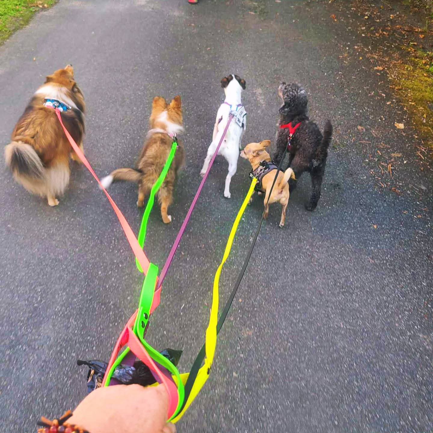 - la laisse 3 mètres variable avec ses mousquetons en aluminium (un au niveau du chien et un au niveau de la poignée). Cette laisse possède 3 anneaux fixes pour pouvoir la raccourcir aux longueurs proposés. NOUVEAU : elle est déclinée en version 10 mm pour petits chiens, chats, lapins ou furet ! (uniquement pour animal – de 7kg)