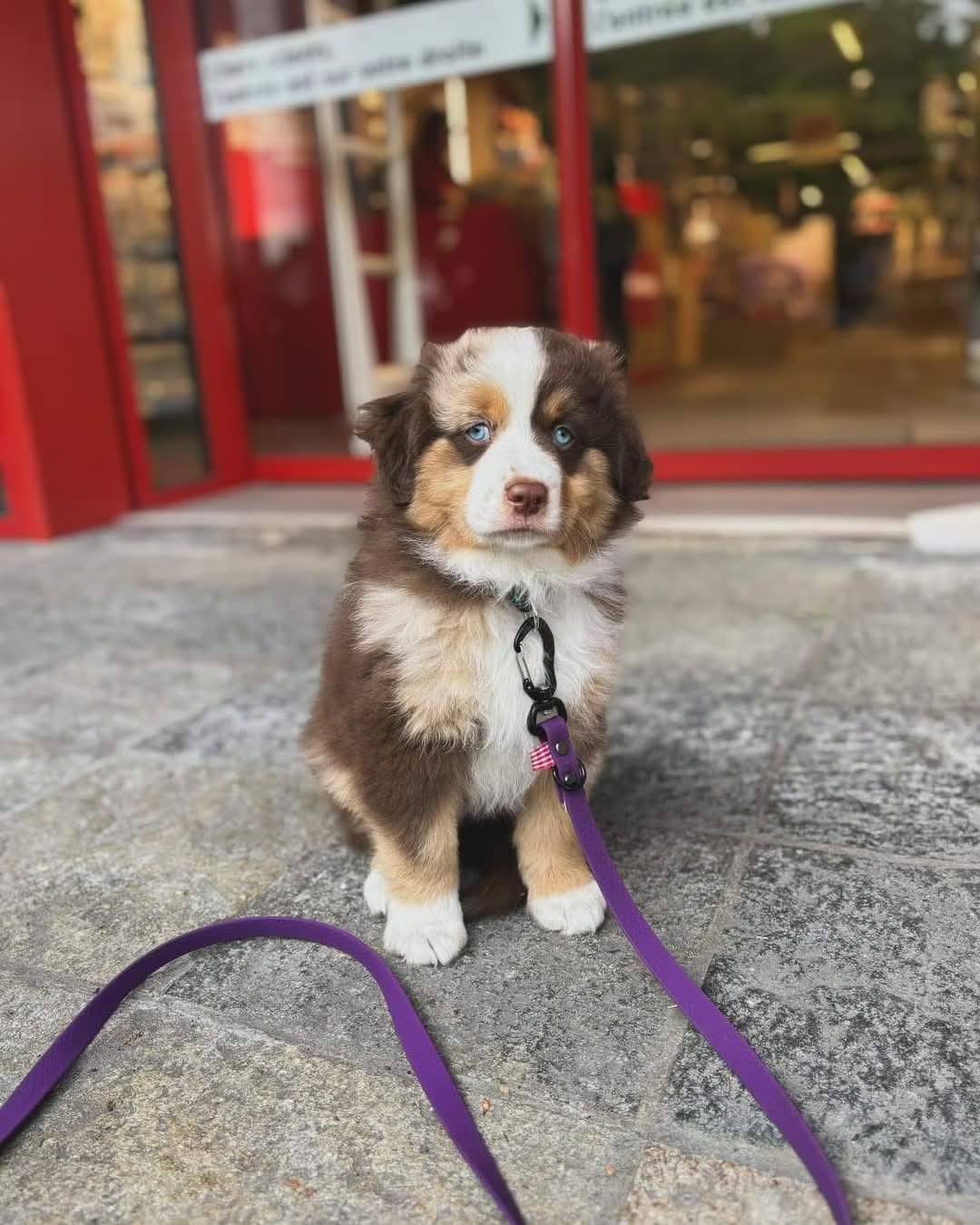 - la laisse 3 mètres modulable avec ses mousquetons en aluminium (un au niveau du chien et un au niveau de la poignée). Cette laisse possède un anneau fixe au niveau du 1 er mousqueton, vers le chien, et un anneau « mobile » vous permettant de l’installer où vous le souhaitez pour raccourcir votre laisse ou pour pouvoir la tenir au niveau de l’épaule ou du bassin. NOUVEAU : elle est déclinée en version 10 mm pour petits chiens, chats, lapins ou furet ! (uniquement pour animal – de 7kg)